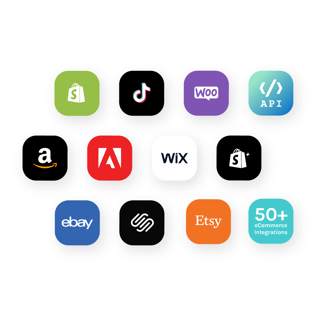 With powerful native integrations with Shopify, WooCommerce, WIX, Squarespace, eBay, Amazon, TikTok Shop, and over 55 other eCommerce and marketplace platforms, Printprehub can securely connect to and import orders from wherever you sell.
