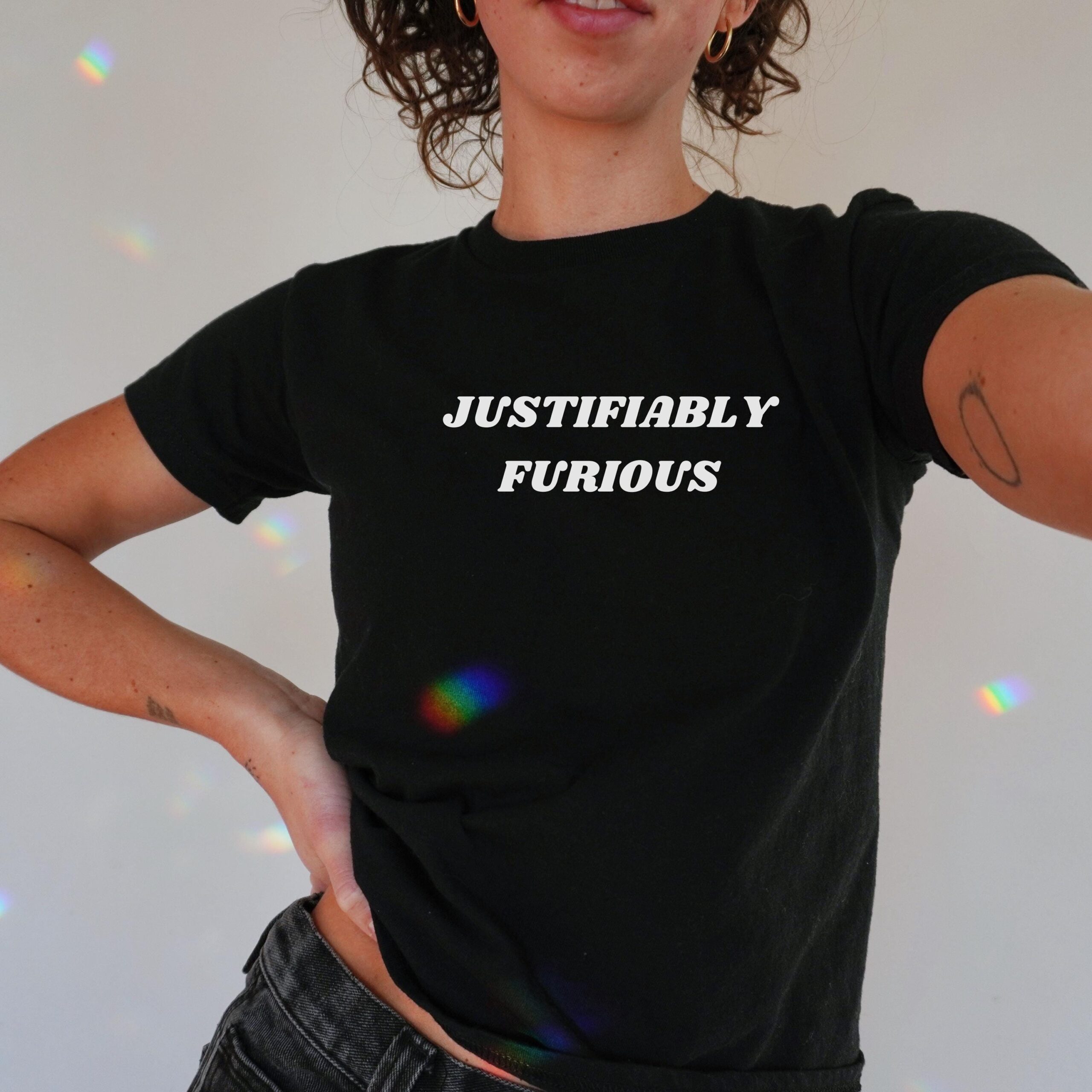 Justifiably Furious Shirt Women’s Y2k Baby Tee Clothes For Girls Smashing Patriarchy Shirt Unhinged Feminist Shirt Subtle Feminism BabyTee Women’s Rights Tshirt Gift For Her