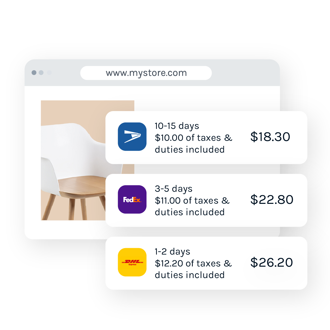 When shipping internationally, accurately calculating and communicating import duties and taxes can be a big burden. Printprehub provides full visibility on expected import taxes, duties and customs fees—allowing you the opportunity to pre-pay these costs to ensure smooth delivery—or pass them on directly to your customer to save on costs. You're in control with complete compatibility with our Rates at Checkout feature so you can maximize your international sales.