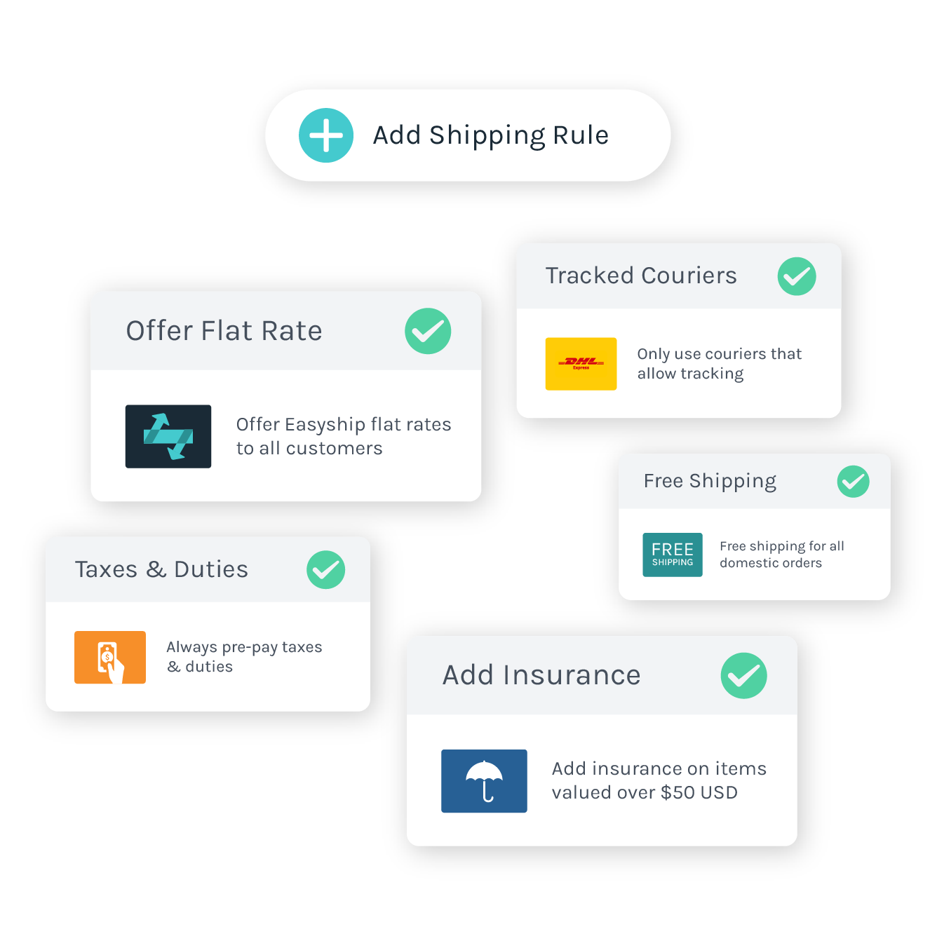 Use Shipping Rules to customize your shipping preferences and avoid wasting time on manual work or repetitive decisions. By applying simple "if this, then that" automation rules, you can set-up specific workflows to automate courier comparison, cheapest label selection, international delivery preferences, smallest box selection and more. Try for free today and start saving hours daily.